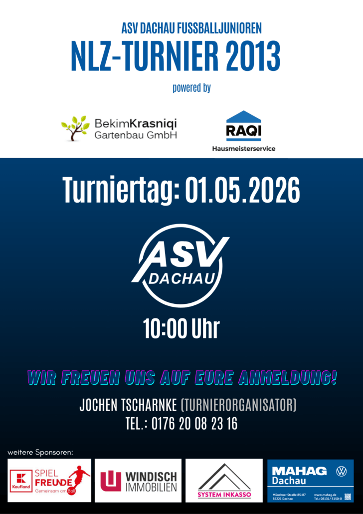 Der ASV Dachau steht seit vielen Jahren für engagierten Jugendfußball und hervorragend organisierte Turniere. Auf unserer modernen Jugendsportanlage an der Gröbenrieder Straße begrüßen wir regelmäßig Gastvereine zu spannenden Wettbewerben in verschiedenen Altersklassen.